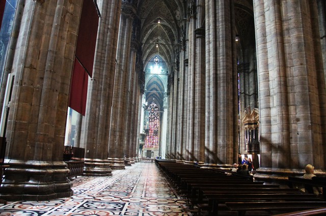 洲的城市,教堂常是城市的中心,米也是如此。位於市中心的米大教堂,始建於1386年,世才得以完成,教堂前後深一百四十八公尺,廊最91公尺,我教堂後面踱到教堂正面,花了分的,於教堂之大,止。