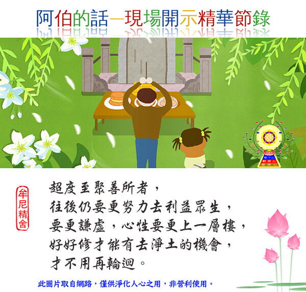 阿伯的—示精:「凡事,不要著在家人生死一,每人都有一天,只是旅程的短不同了。」面常敲至生死,下我的心有一慌,只是的坐在父的病床旁,透一又一唱「南阿陀佛」的佛陪伴著父,直到送父他生前最熟悉的境(家)。