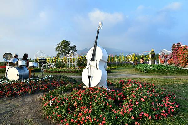腹地的中社花市除了花拍美照外,方的火炎山更是最佳的背景,另外花田也穿插各式造景,不有荷,有心拱等,花氛添加不一的味道,拍出有、有次的美照。
