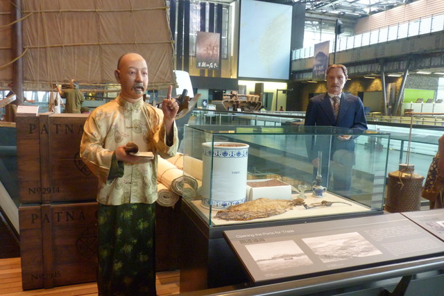 往前走可以看到一小型商船的剖面,可以看到船部的及工人辛苦的物。
