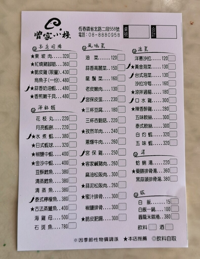 每次在前往丁渡假的候,午餐通常在春吃一吃再跑行程,一次也不例外,有於家的成用餐都比注重食,所以一次便造以台菜主的「曾家小」,店家位於春台26北上往城方向的大路旁,如果有看到路介,之前出往返那多次,也都不太注意到,餐外有敞的停,到用餐,不用心停的。