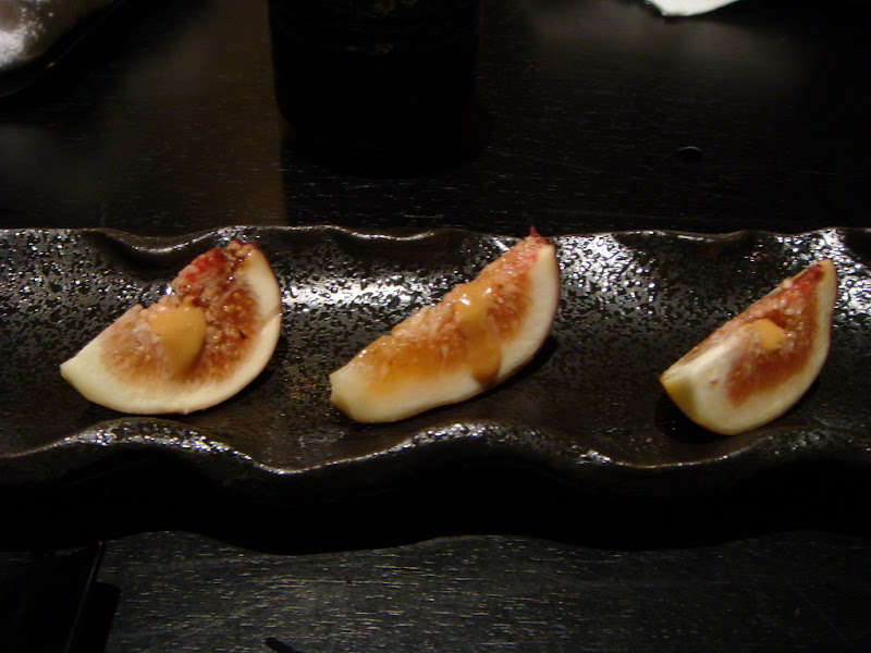 熟食有烤,搭配炸牛蒡和重口味的沾,沾似炸,中甜;接著上不知道是什和味噌汁,部分我都吃不大懂,味噌汁倒不喝。後餐端招待的花果,上面沾了少甜味噌,作餐後水果好;甜是好吃的黑芝麻布丁,口感滑嫩,味道做得好,吃得很舒服,也套餐下完美的句。