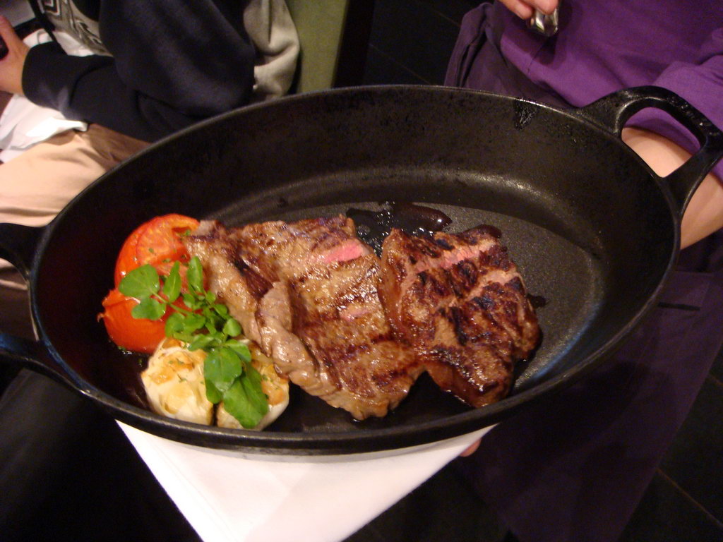 天共有牛排,先送上美rib-eye,面有cap,然已分切好,但因部位略有不同,完全要看自己挑到那一肉!傅的肉……牛肉,熟成得地好吃,嫩得像教科一般,沾上之花是我最的吃法,芥末籽些酸,也不吃。