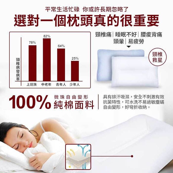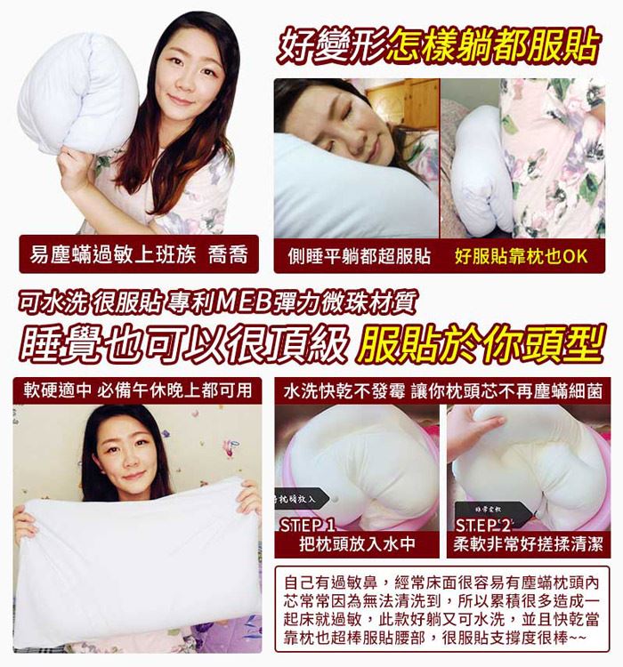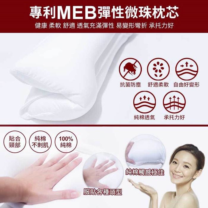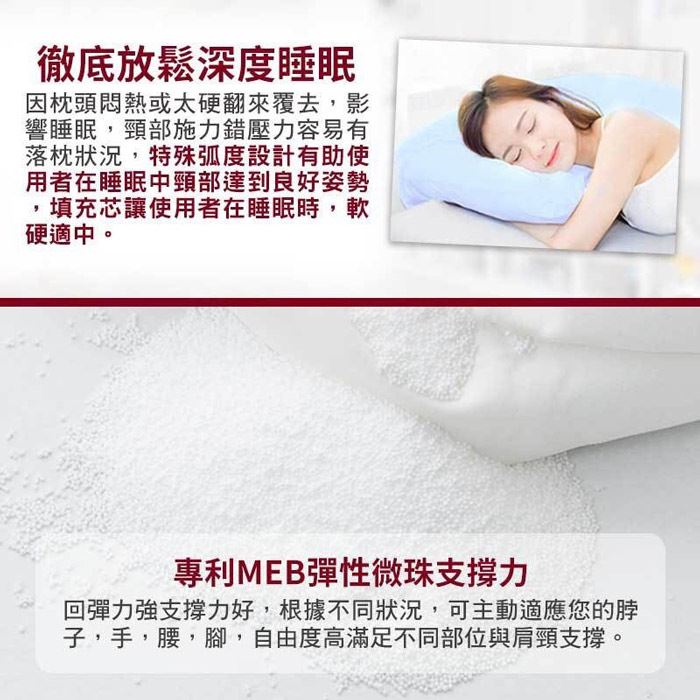 利MEB性微珠枕芯,日本最流行活生,100%棉面料透材,可水洗健康舒眠枕!最低只要699元起