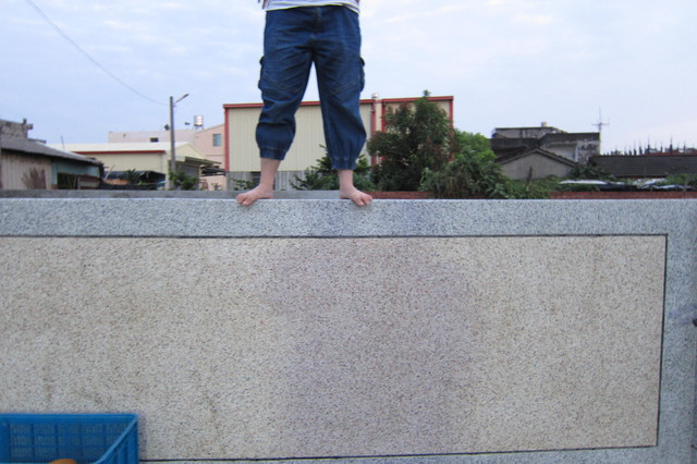 要我藉由踩窗框爬上石沿著石再爬上水塔,
