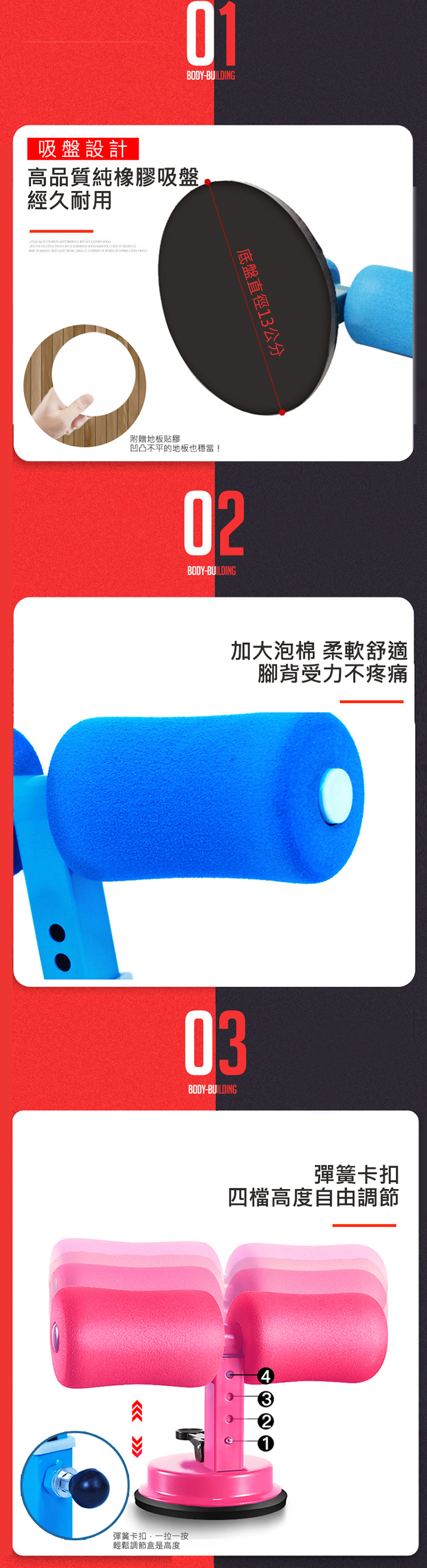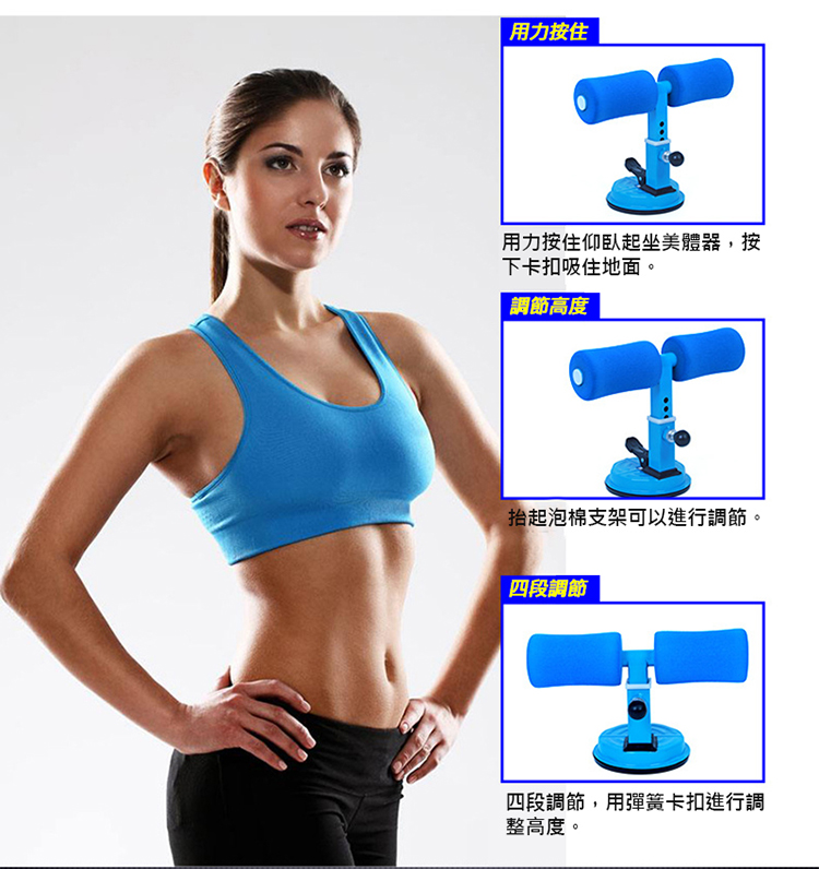 ● 簧卡扣、四高度自由,一按一拉自由高度,合男女健身!