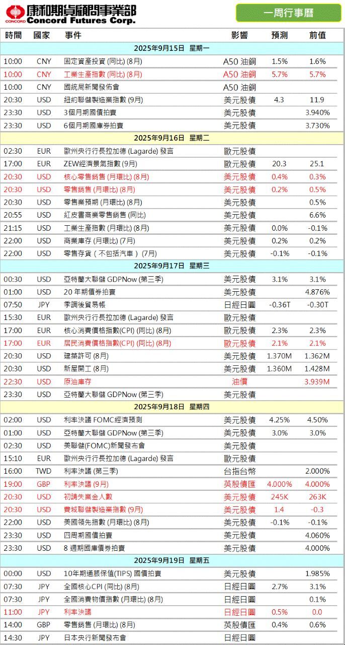 康和期重要行事20250915-0919@康和期外期惠徐雅如#外期海期期手