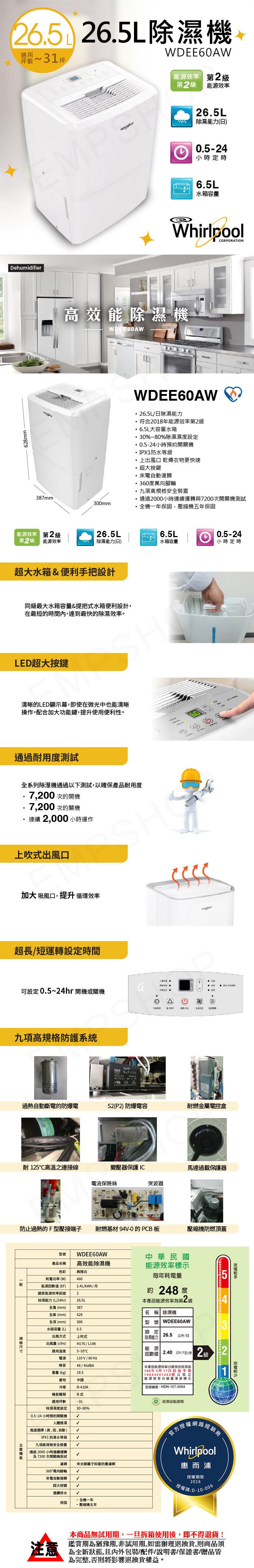 【惠而浦Whirlpool】26.5L能除 WDEE60AW ,推,箱,CP值,,,便宜,惠,介,排行,精,特,周年,,限