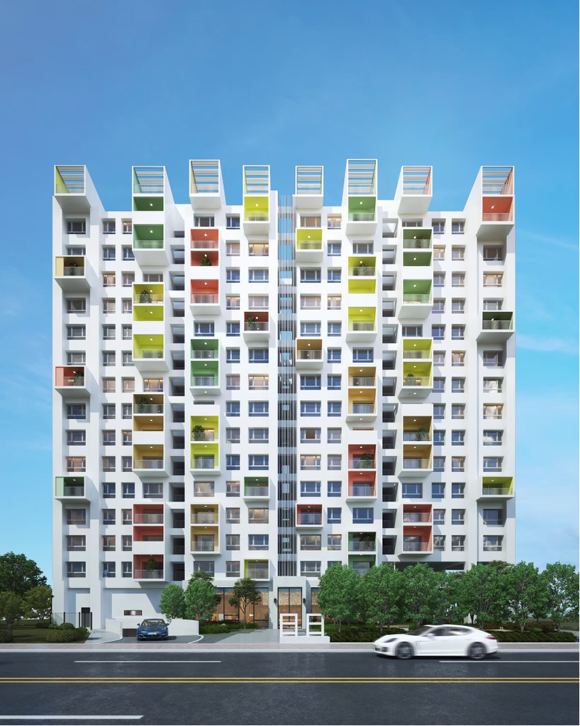 昌建《昌日日》空全家庭而,打破空年的限,透台七彩色整大,予建日日活力的意象。《昌日日》用深凹窗外景台的做法,藉此到遮、能的效果。本案得美思法新大青,分金。