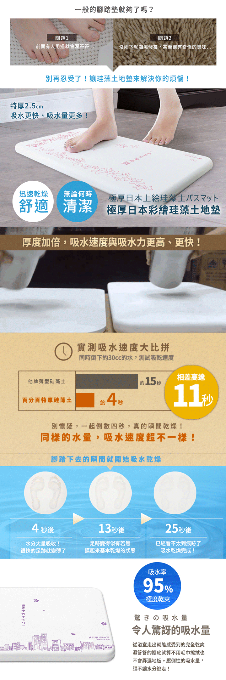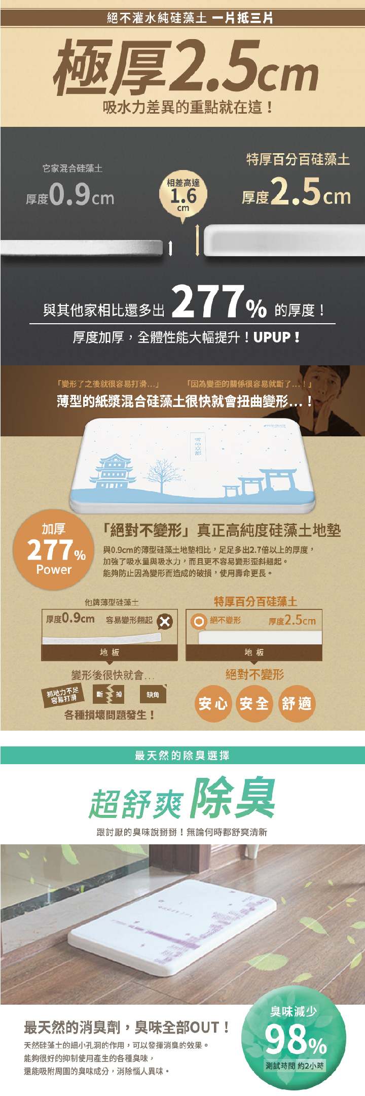 ● 可水洗 / 可日,真正硅藻土不,吸水速度更越!