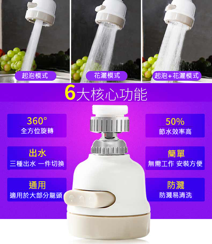 高+水-重出水更,360度象旋,使用更多用途!水珠密,有效省水流,保地球,居家水有一套!