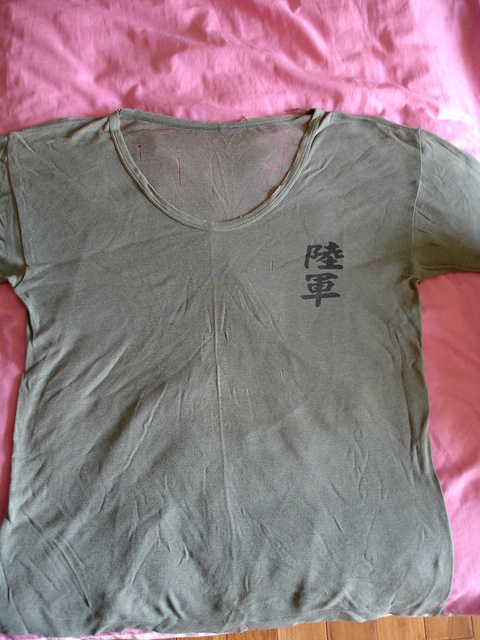 有兵或看教片的人都有印象。汗衫,草色,右胸上有字。好穿又容易排汗,跑完三千或者操完,衣服整件都透,汗衫也不例外。