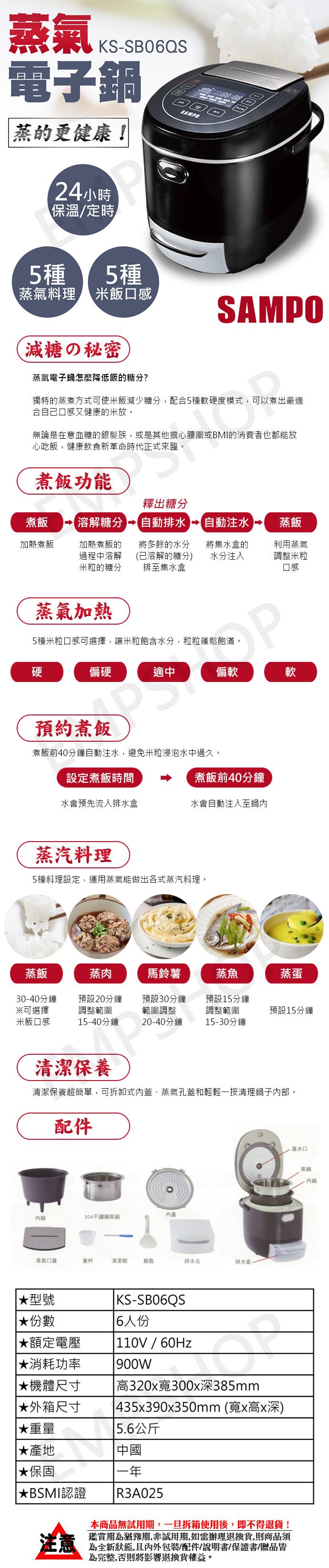 不然有【SAMPO】6人份蒸子 KS-SB06QS在是有不方便,在路上比找了久,於便宜的【SAMPO】6人份蒸子 KS-SB06QS了
