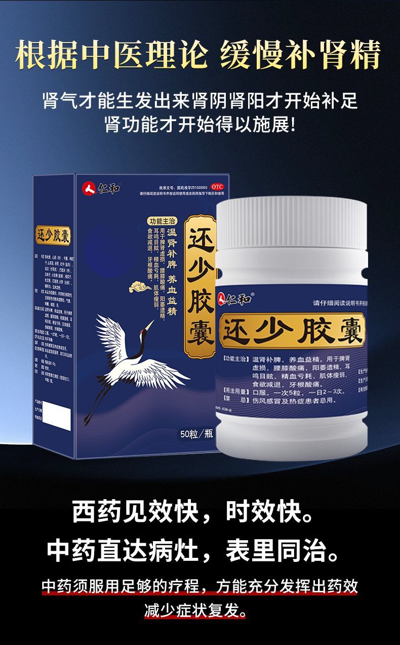 仁和 還少膠囊 0.42g*50粒/盒 【強效爆款】仁和還少膠囊腰膝酸軟虛腎虛無欲不勃中途疲