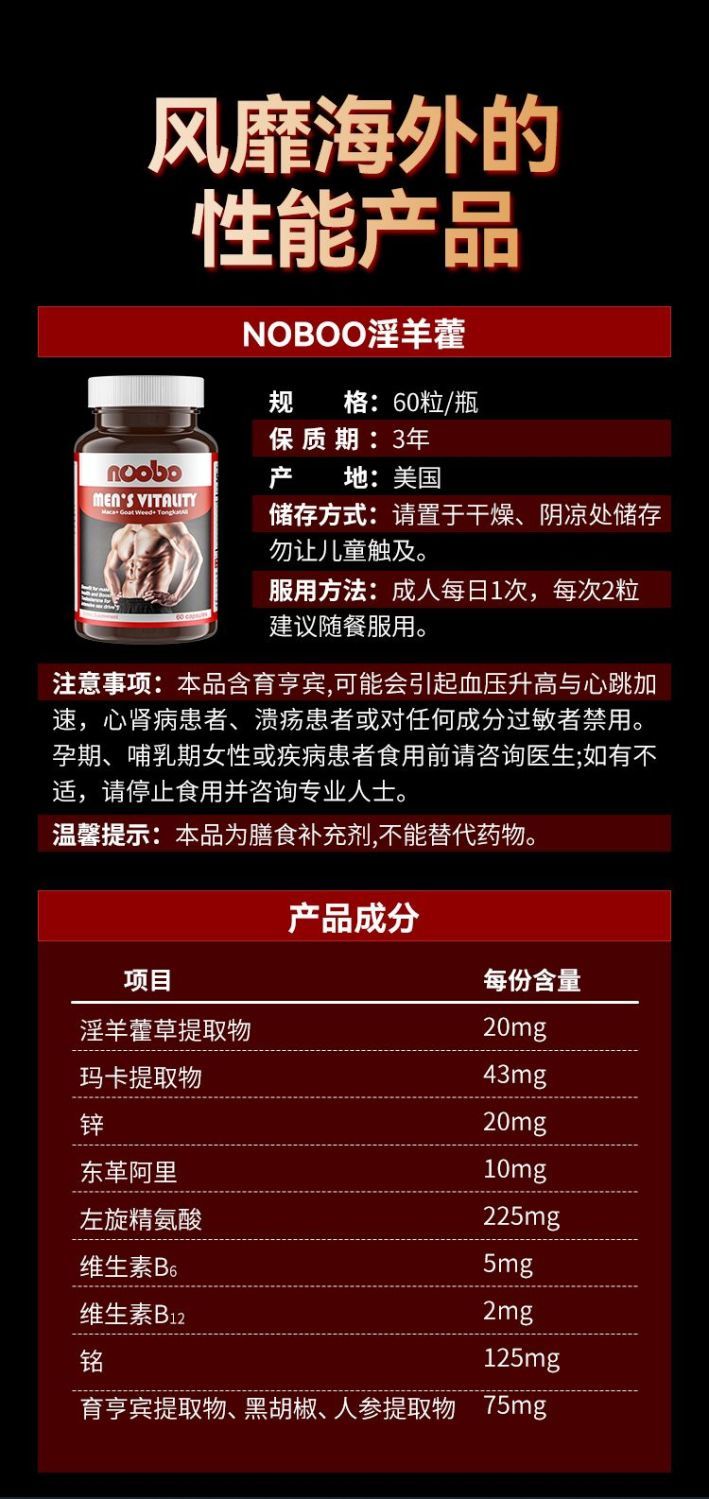 美國NOOBO瑪卡睪丸酮60粒膠囊補充雄性激素荷爾蒙增肌健身持久