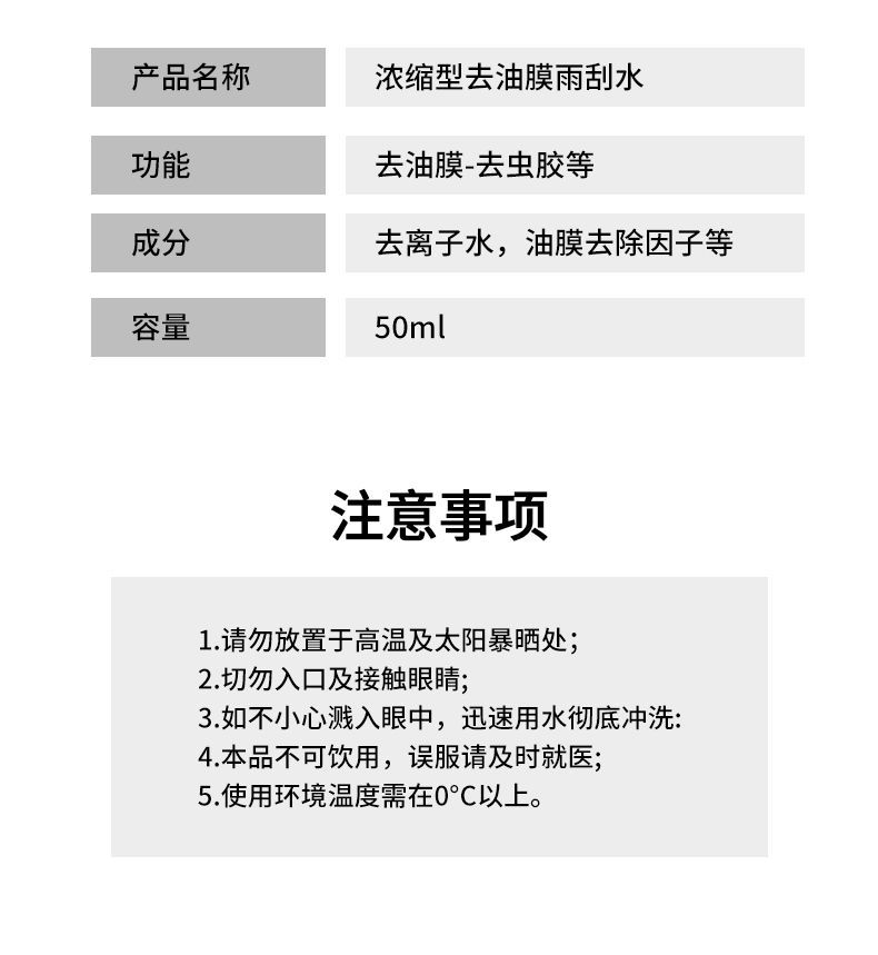 【抗油膜雨刮精】濃縮汽車擋風玻璃水油膜去除劑高效去污雨刮水