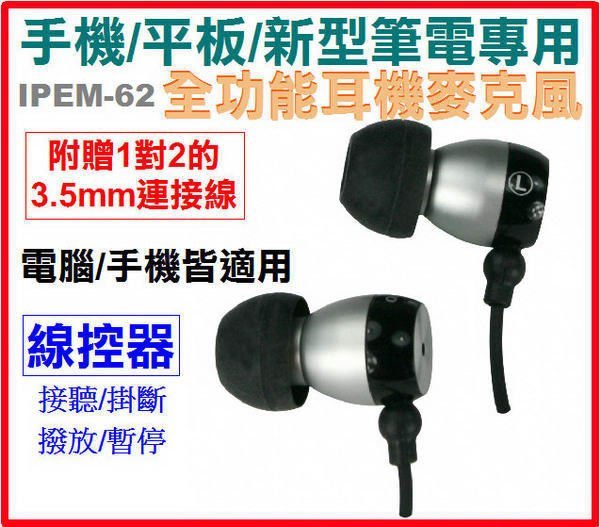 優寶購物《ubao.Tw》特貨品商城,黑貓宅配,取貨付款,@淡水無國界@ 耐嘉 IPEM-62 KINYO 手機 電腦都可用 耳機麥克風 耳塞 1對2的3.5mm 三星 免持聽筒 | Yahoo拍賣