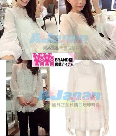 優寶購物《ubao.Tw》特貨品商城,黑貓宅配,取貨付款,VIVI4.5.6月雜誌揭曉~Lena.Snidel春夏主打款-日單半透膚荷葉邊多層次衣襬雪紡上衣/兩件組-現貨白色*1 | Yahoo拍賣