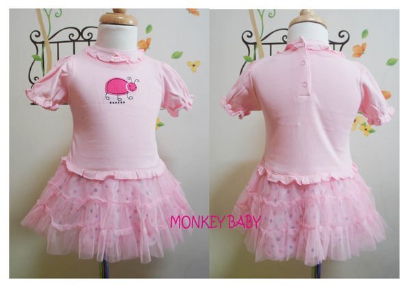 優寶購物《ubao.Tw》特貨品商城,黑貓宅配,取貨付款,全館滿699免運【MONKEY BABY 】外貿品牌粉色瓢蟲100%棉質點點紗裙洋裝+褲子 | Yahoo拍賣