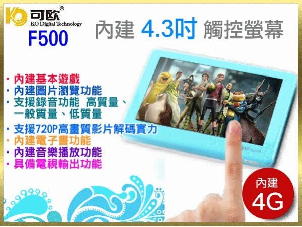 優寶購物《ubao.Tw》特貨品商城,黑貓宅配,取貨付款,【傻瓜批發】KO可歐 F500 4.3吋 內建4G 高清屏 觸控 圖片輸出 英文辭典 電子書 保固一年 | Yahoo拍賣