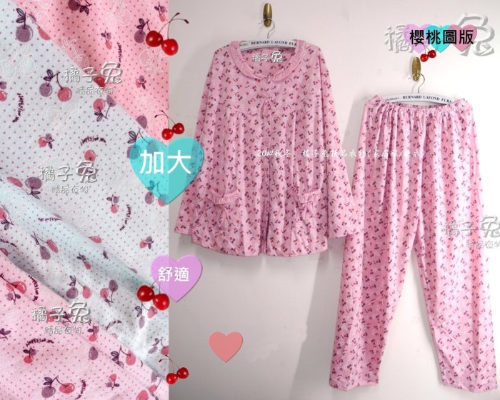 優寶購物《ubao.Tw》特貨品商城,黑貓宅配,取貨付款,[橘子兔的精品衣物店]秋冬加大厚款心型圖mix粉嫩色系櫻桃圖案衣褲套裝/睡衣/家居服 | Yahoo拍賣