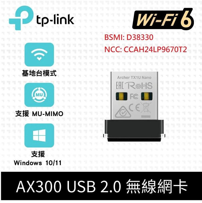優寶購物《ubao.Tw》特貨品商城,黑貓宅配,取貨付款,TP-Link Archer TX1U Nano AX300 Nano Wi-Fi 6 無線網卡 USB網卡 迷你型 | Yahoo拍賣