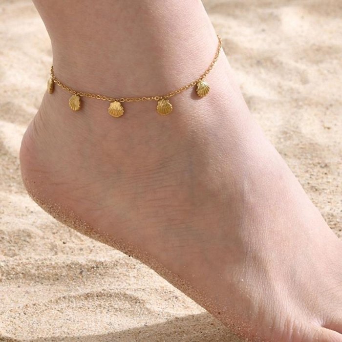 優寶購物《ubao.Tw》特貨品商城,黑貓宅配,取貨付款,《316小舖》新品免運【XE65】(優質鈦鋼腳鍊-時尚個性簡約不鏽鋼扁十字鍊貝殼配件腳鍊金色女士生日禮物鋼女腳鍊金腳鍊) | Yahoo拍賣