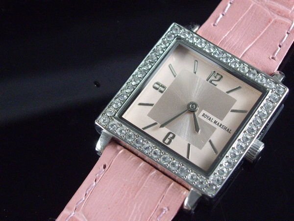優寶購物《ubao.Tw》特貨品商城,黑貓宅配,取貨付款,艾曼達精品~瑞士機心台灣精品royal marshal香耐耳風正方型水晶鑽石英錶帶寬16mm粉色標 | Yahoo拍賣