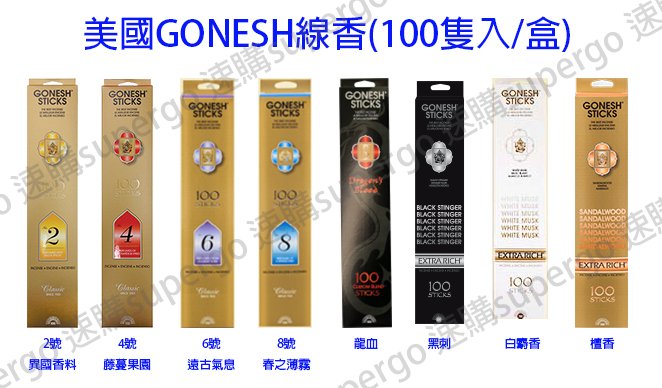 優寶購物《ubao.Tw》特貨品商城,黑貓宅配,取貨付款,【現貨不必等】美國 Gonesh線香/精油線香100入(2號/4號/6號/8號/檀香/龍血/黑刺) | Yahoo拍賣