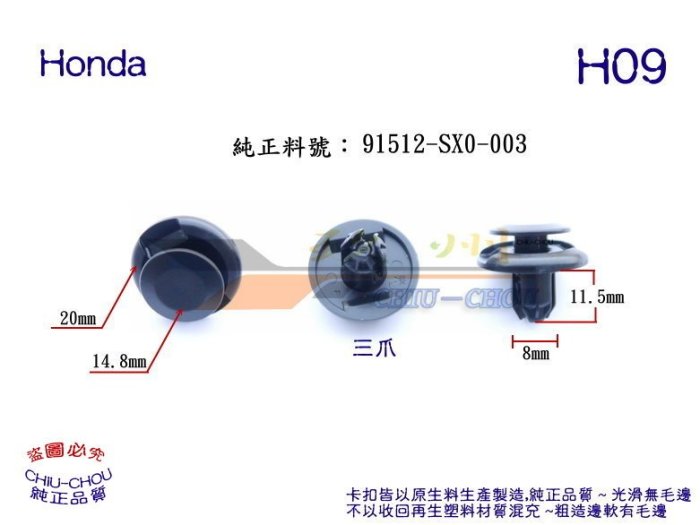 優寶購物《ubao.Tw》特貨品商城,黑貓宅配,取貨付款,《 玖 州 》Honda 純正 (H09) 內龜板輪弧 擋泥板 91512-SX0-003 固定卡扣 | Yahoo拍賣