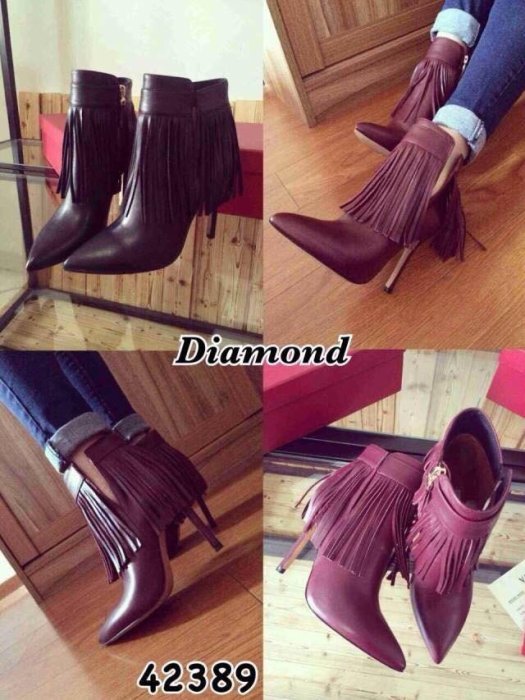 優寶購物《ubao.Tw》特貨品商城,黑貓宅配,取貨付款,[ ohya梨花 ] =韓國帶回=最新秋冬新款性感韓妞個性穿搭黑色真皮流蘇踝靴高跟鞋 | Yahoo拍賣