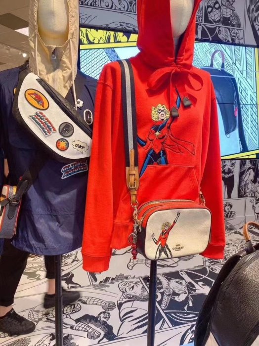 優寶購物《ubao.Tw》特貨品商城,黑貓宅配,取貨付款,╭☆包媽子店☆COACH X MARVEL漫威合作款相機包雙拉鏈小包 | Yahoo拍賣