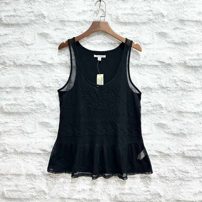 優寶購物《ubao.Tw》特貨品商城,黑貓宅配,取貨付款,Maple麋鹿小舖 American Eagle * AE 黑色電繡花花蕾絲無袖上衣 * ( 現貨S號 ) | Yahoo拍賣