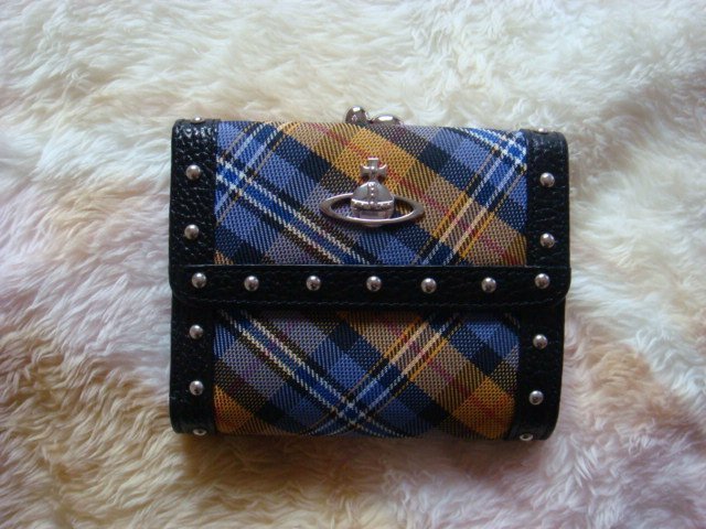 優寶購物《ubao.Tw》特貨品商城,黑貓宅配,取貨付款,~barbie~☆Vivienne Westwood經典星球Logo藍格紋牛格珠扣皮夾☆ | Yahoo拍賣