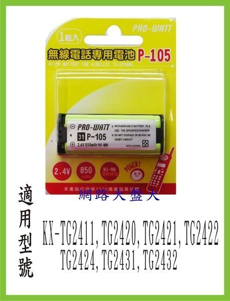 優寶購物《ubao.Tw》特貨品商城,黑貓宅配,取貨付款,#網路大盤大#PRO-WATT無線電話電池 HHR-P105 P104 P107 適用:國際牌電話機 | Yahoo拍賣