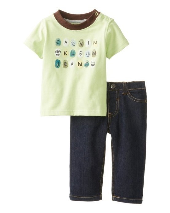 優寶購物《ubao.Tw》特貨品商城,黑貓宅配,取貨付款,美國 CK Calvin Klein 童裝 男寶寶 超級Q指印字母短袖圓領T恤搭配牛仔褲2件套組 尺寸6-9M | Yahoo拍賣
