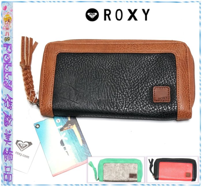 優寶購物《ubao.Tw》特貨品商城,黑貓宅配,取貨付款,↘特價☆POLLY媽☆歐美ROXY黑棕水綠銀灰橘色皮質滾邊拉鏈大型長夾19.5×10.5×2cm~3款 | Yahoo拍賣