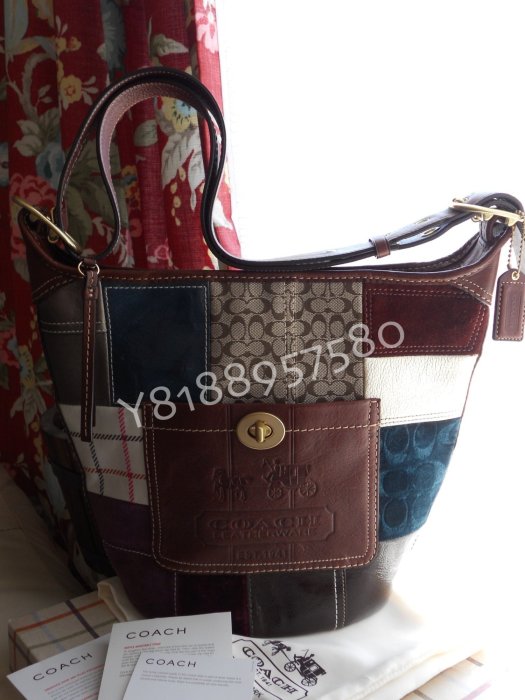 優寶購物《ubao.Tw》特貨品商城,黑貓宅配,取貨付款,全新真品 Coach 11356 拼布肩揹斜揹水桶包 | Yahoo拍賣