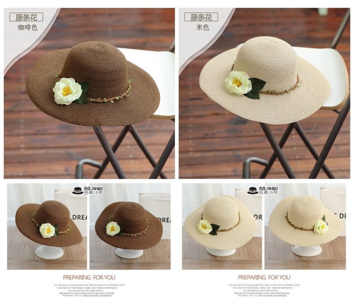 優寶購物《ubao.Tw》特貨品商城,黑貓宅配,取貨付款,帽子女夏遮陽帽 遮臉防曬帽沙灘帽 太陽帽 藤條花草帽 | Yahoo拍賣