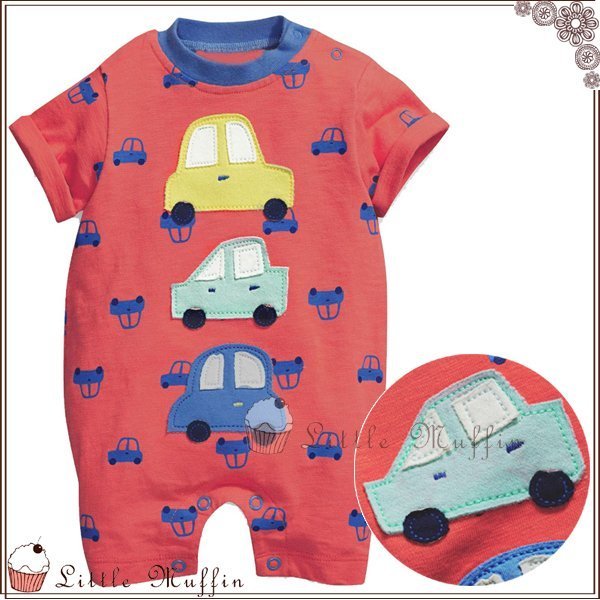 優寶購物《ubao.Tw》特貨品商城,黑貓宅配,取貨付款,棉質 立體小汽車繡布開扣短袖連身包屁衣 | Yahoo拍賣