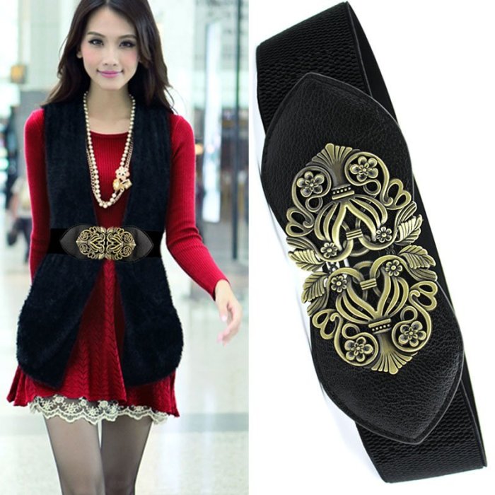 優寶購物《ubao.Tw》特貨品商城,黑貓宅配,取貨付款,P0011_復古雕花彈力寬鬆緊腰封腰帶皮帶百搭腰飾帶 | Yahoo拍賣