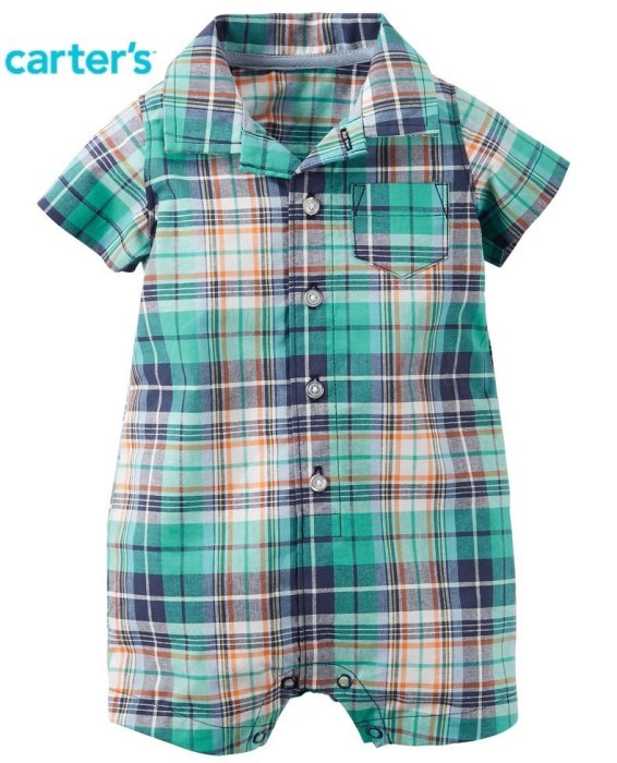 優寶購物《ubao.Tw》特貨品商城,黑貓宅配,取貨付款,[童心歐美童裝] ㊣ 美國 CARTER'S 綠色格紋短袖襯衫式連身衣, 官網正品 (12M) | Yahoo拍賣