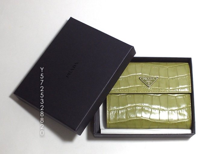 優寶購物《ubao.Tw》特貨品商城,黑貓宅配,取貨付款,全新真品 PRADA 鱷魚壓紋牛皮釦式零錢機能中夾(芥末綠色) made in ITALY 特價$8800含運 | Yahoo拍賣