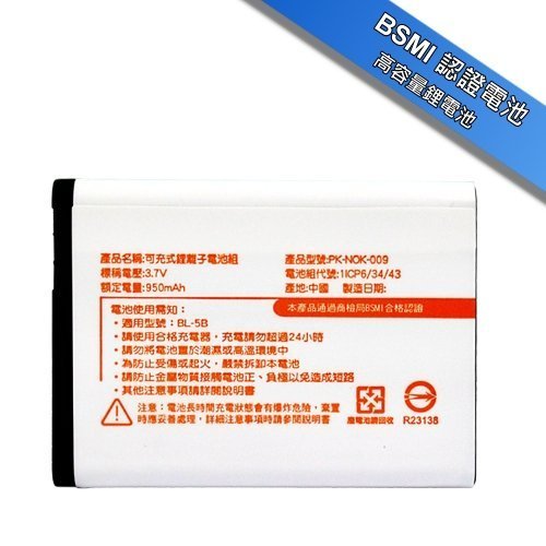 優寶購物《ubao.Tw》特貨品商城,黑貓宅配,取貨付款,Koopin 認證版高容量防爆鋰電池 NOKIA BL-5B:3220/6020/6021/6060/6080 | Yahoo拍賣