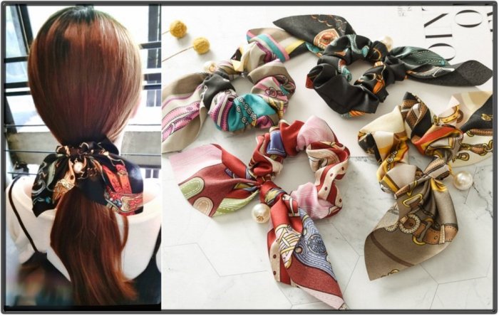 優寶購物《ubao.Tw》特貨品商城,黑貓宅配,取貨付款,復古圖騰 幾何 印花 珍珠 蝴蝶結 馬尾 髮束 髮圈 髮繩 絲質 大腸圈 | Yahoo拍賣
