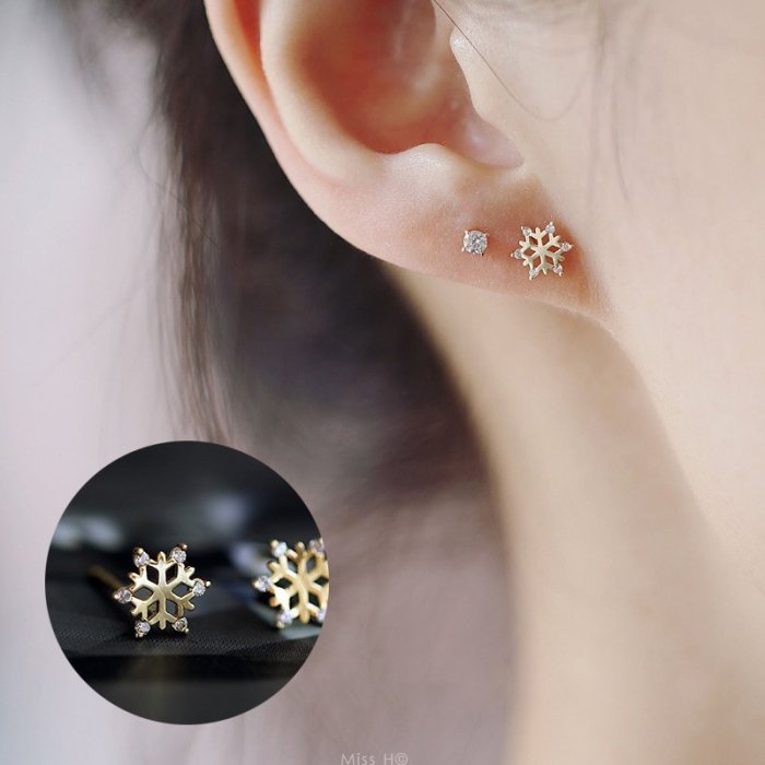 優寶購物《ubao.Tw》特貨品商城,黑貓宅配,取貨付款,LA MIMOSA韓國正品 純9K黃金。六鑽雪花 鑲鋯鑽精緻閃亮迷你耳環 裡外全真金 永不褪色 | Yahoo拍賣