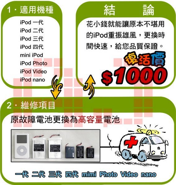 優寶購物《ubao.Tw》特貨品商城,黑貓宅配,取貨付款,IPOD VIDEO 維修 IPOD VIDEO 電池更換 服務 | Yahoo拍賣