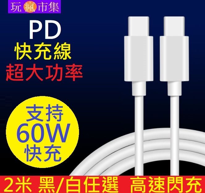 優寶購物《ubao.Tw》特貨品商城,黑貓宅配,取貨付款,2米 PD 60W快充線 雙頭type-c 公對公 閃充USB3.1傳輸線 數據線 充電線 For三星iPhone小米 | Yahoo拍賣