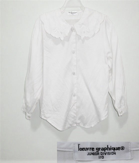 優寶購物《ubao.Tw》特貨品商城,黑貓宅配,取貨付款,二手 女童 l''oeuvre graphippue白色翻領長袖襯衫 | Yahoo拍賣