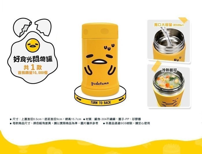 優寶購物《ubao.Tw》特貨品商城,黑貓宅配,取貨付款,蛋黃哥~新貨到!!!!蛋黃哥限定款【蛋黃哥好食光悶燒罐】 | Yahoo拍賣